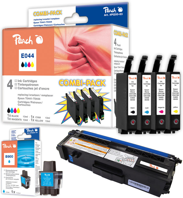 Für alle bekannten Tintenstrahldrucker Modelle der führenden Druckerhersteller findet man im Onlineshop vom Schweizer Dritthersteller günstige original Patronen und billige kompatible Druckerpatronen, die sofort geliefert werden. Zu diesen Druckermodellen gehören auch solche von Epson, Canon, Lexmark, Dell, Oki, Kyocera, Brother, Hewlett-Packard (HP) oder Samsung. Natürlich sind alle Patronen preisgünstig in den Farben schwarz, rot/magenta, blau/cyan und gelb jederzeit abrufbar. Das gilt auch für das oft nachgefragte vier Farben Combi Pack. Dieses Multipaket enthält die vier Farben im Patronenverbund und ist wegen eines Mengenrabatts besonders günstig zu kaufen. Ebenfalls zum Sparpreis wird das von Peach neu entwickelte Tintentank Snap And Print System offeriert. Bei diesem innovativen System aus dem Aschaffenburg Druckerpatronen und Toner Laden online muss nicht mehr bei einem fälligen Patronenwechsel auch der Druckkopf getauscht werden, wie dies bislang bei vielen Druckermodellen von den Druckerherstellern vorgesehen war. So kann man viel Geld sparen ohne auf gleichbleibend gute Qualität zu verzichten. Vom Magazin für Computer Technik C’t wurden nachgefüllte Patronen geprüft, Peach kompatible Tintenpatronen erhielten bei diesem Test besonders gute Bewertung. Auch im Ausland kann man selbstverständlich unschwer mit Generika Druckerzubehör dieses Onlineanbieters drucken, denn geliefert wird unverzüglich z.B. auch nach Belgien, Grossbritannien, in die Niederlande und die Schweiz, nach Österreich, Frankreich, Polen, Ungarn, Tschechien, Italien oder Spanien. Anfallende Zollkosten trägt der Onlinehändler für seine Kundschaft im Ausland. Zu dem teuren original Drucker Verbrauchsmaterial aus den Geschäften in den Einkaufspassagen sind günstige Patronen und preiswerte Toner aus dem Aschaffenburg Tonerkartuschen und Tintenpatronen Shop online eine extrem rentable Alternative für jeden preisbewussten Druckeranwender.